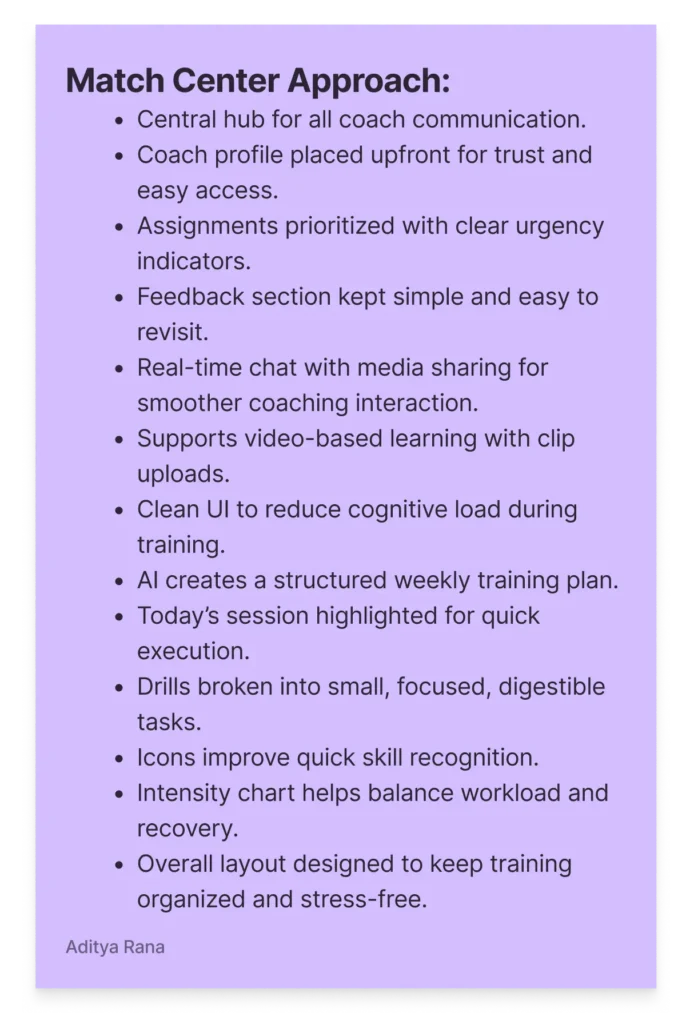 This case study showcases my end-to-end design process, from understanding player needs to crafting a clean, actionable interface tailored for athletes under pressure.